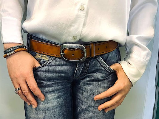Eine sehr spannende und doch auch stimmige Damen Armband Farbkombination: Ein einfaches 6mm senffarbenes Lederband in Kombination mit einem zweifach gewickelten 4mm Lederarmband in Petrol Metallic. Das blau schimmernde Petrol Metallic ist eine außergewöhnliche Farbe und hat einen leicht metallischen Glanz. Dieser Glanz passt hervorragend zu dem matten helleren Sinapi Braun. Eine schöne Farbkombination für warme Sommertage mit heller Kleidung. Die Lederarmbänder werden in unserer deutschen Schmuck Manufaktur mit der Hand gefertigt.