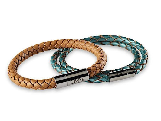 6 mm Damen Armband geflochten Farbe Hellbraun mit Edelstahl Magnetverschluss. Dazu ein petrolfarbenes doppeltes geflochtenes 4 mm Damen Armband mit Edelstahl Magnetverschluss.