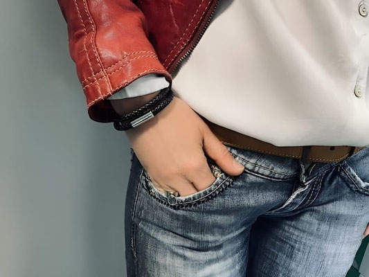 Schwarz passt zu allem, lässt sich einzelne tragen und wunderbar kombinieren. Habe mehrere Bänder von Crazy Frog und kombiniere die auch gern mit einem Perlenarmband.