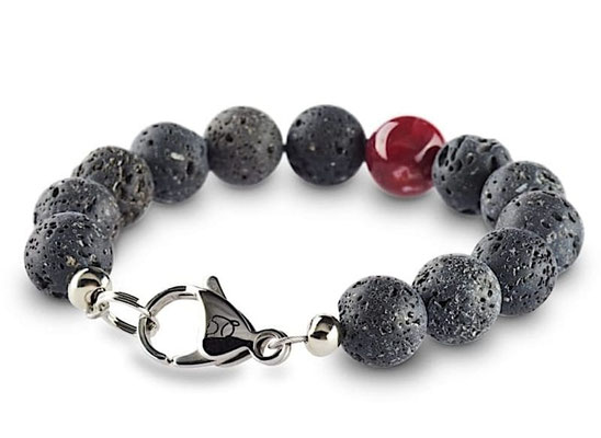 Natürlich edel – die feinen grauen 10mm Lavaperlen aus Chile mit dem warmen Fire Achat Stein in der Mitte des Perlenarmbands für Damen zeugen von Ihrer besonderen Note. Der einzelne rote Stein ist der Eyecatcher in diesem puristischen Armband. Der fein glänzende Edelstahl-Karabiner als Verschluss mit dem gravierten Crazy Frog Logo rundet die Perfektion ab. Die graue Variante der Lavalperlen passt auch besonders gut zu sommerlicher heller Kleidung. Weil jede Perle einzigartig und Millionenjahre alt ist, tragen Sie ein absolutes Einzelstück.