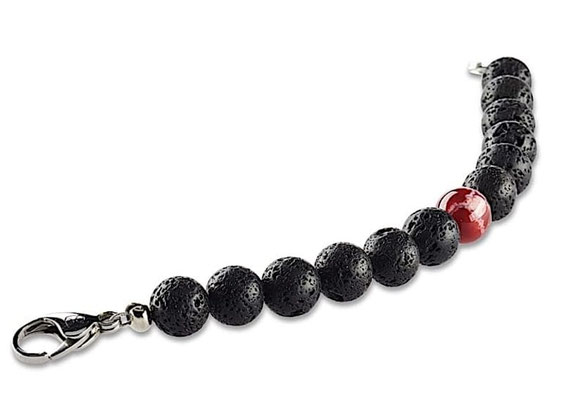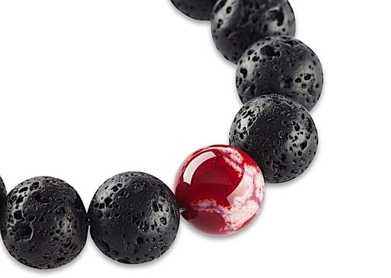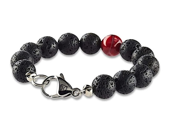 Schwarze natürliche Lavaperlen aus Indonesien befinden sich in diesem handgefertigen Damen Perlenarmband in Symbiose mit edlem Fire Achat. Dieser einzelne Stein in einem warmen Rotton sticht aus dem 10mm Damen-Armband wir eine Kirsche hervor. Armbänder von Crazy Frog waren noch nie aufdringlich, sondern immer edel und zurückhaltend. Die schwarzen Lavaperlen schmiegen sich angenehm um Ihr Handgelenk. Der feine Edelstahl-Verschluss zeugt von der Wertigkeit des Perlenarmbandes aus unserer Manufaktur und harmoniert wunderbar mit den schwarzen Perlen. Jede Perle dieses Armbandes ist einmalig auf der Welt und Sie tragen ein absolutes Unikat.