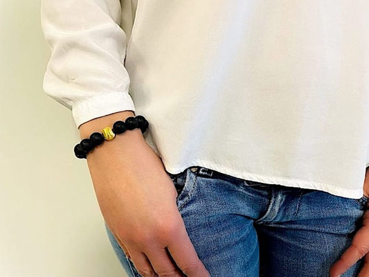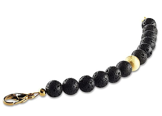 Bei diesem handgefertigten 10mm Damen Armband aus indonesischen schwarzen Lavaperlen bildet die fein geschliffene Goldperle aus 18 Karat Gold den Mittelpunkt. Jede einzelne Perle ist ein absolutes naturbelassenes Einzelstück und ist mit keiner zweiten Perle identisch. Der formschöne Karabiner-Verschluss ist ebenfalls in 18 Karat Gold platiniert und zeugt von der hochwertigen Anmutung. Wer Wert auf natürliche Materialien, hochwertige Verarbeitung und Ästhetik legt, wird bei den Perlenarmbändern von Crazy Frog bestens bedient.