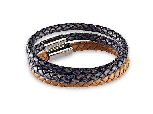 Das schöne handgefertigte 8 mm Lederarmband für Herren in einem senffarbenen Leder wird hier mit einem doppelt gewickelten 6 mm Armband in Ocean Blau kombiniert. Das Ocean Blau wirkt, als hätten dieses Lederarmband schon Generationen vor Ihnen getragen und gibt dieser Farbkombination ihren ganz besonderen Charme. Der fein polierte Edelstahlverschluss zeigt trotz des Used-Looks, dass dieses Herren Armband aus Deutschland eine gekonnte Mischung von gestern und heute bildet.
