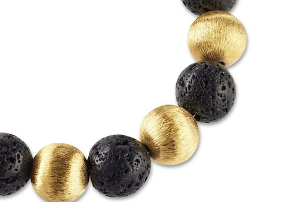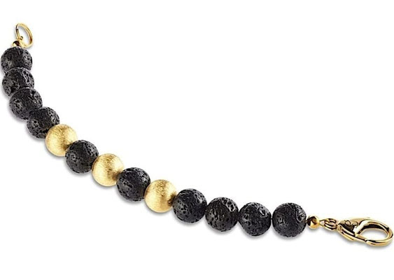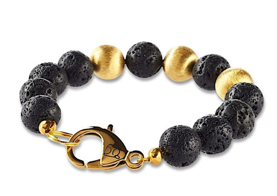 Drei Perlen in 18 Karat Gold bilden den reizvollen Kontrast in Verbindung mit den schwarzen indonesischen Lavaperlen bei diesem 12mm Herren Perlenarmband. Jeweils getrennt durch eine schwarze Lavaperle entsteht mit den vergoldeten Perlen eine spannende Farbkonstellation. Auch der Karabiner – Verschluss ist mit echtem 18 Karat Gold überzogen und zeugt von der Handwerkskunst in unserer Schmuck Manufaktur. Von indonesischen Vulkanen aus Jahrmillionen alter Magma entnommen, ist jede Lavaperle ein absolutes Einzelstück und kommt so nie zweimal in der Welt vor. Ein handgefertigtes Perlenarmband für Männer mit Stil.